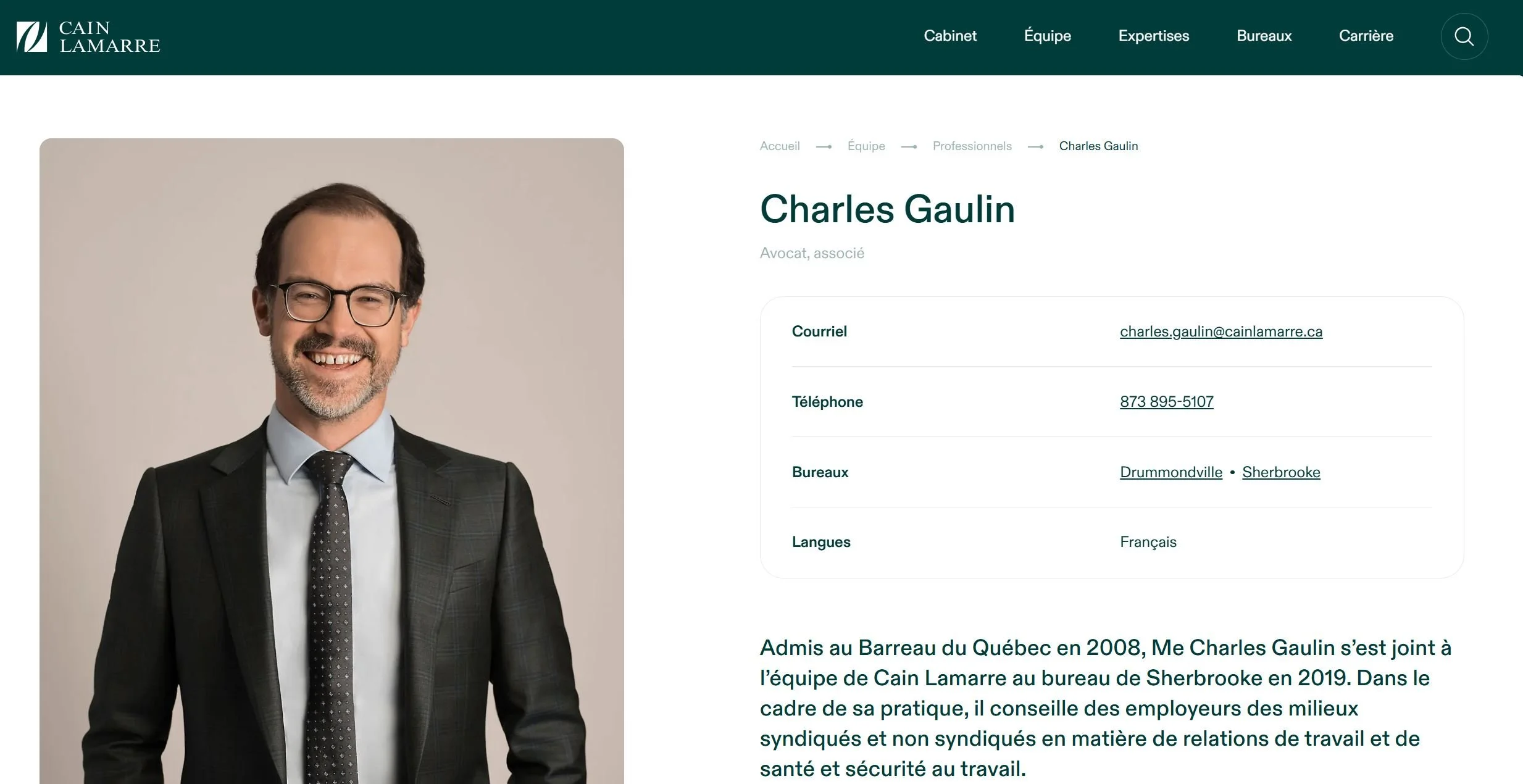 [13] Gina DOUCET, « Notre cabinet. Près pour aller loin », Cain Lamarre, décembre 2023, en ligne : ‹https://cainlamarre.ca/notre-cabinet/›.