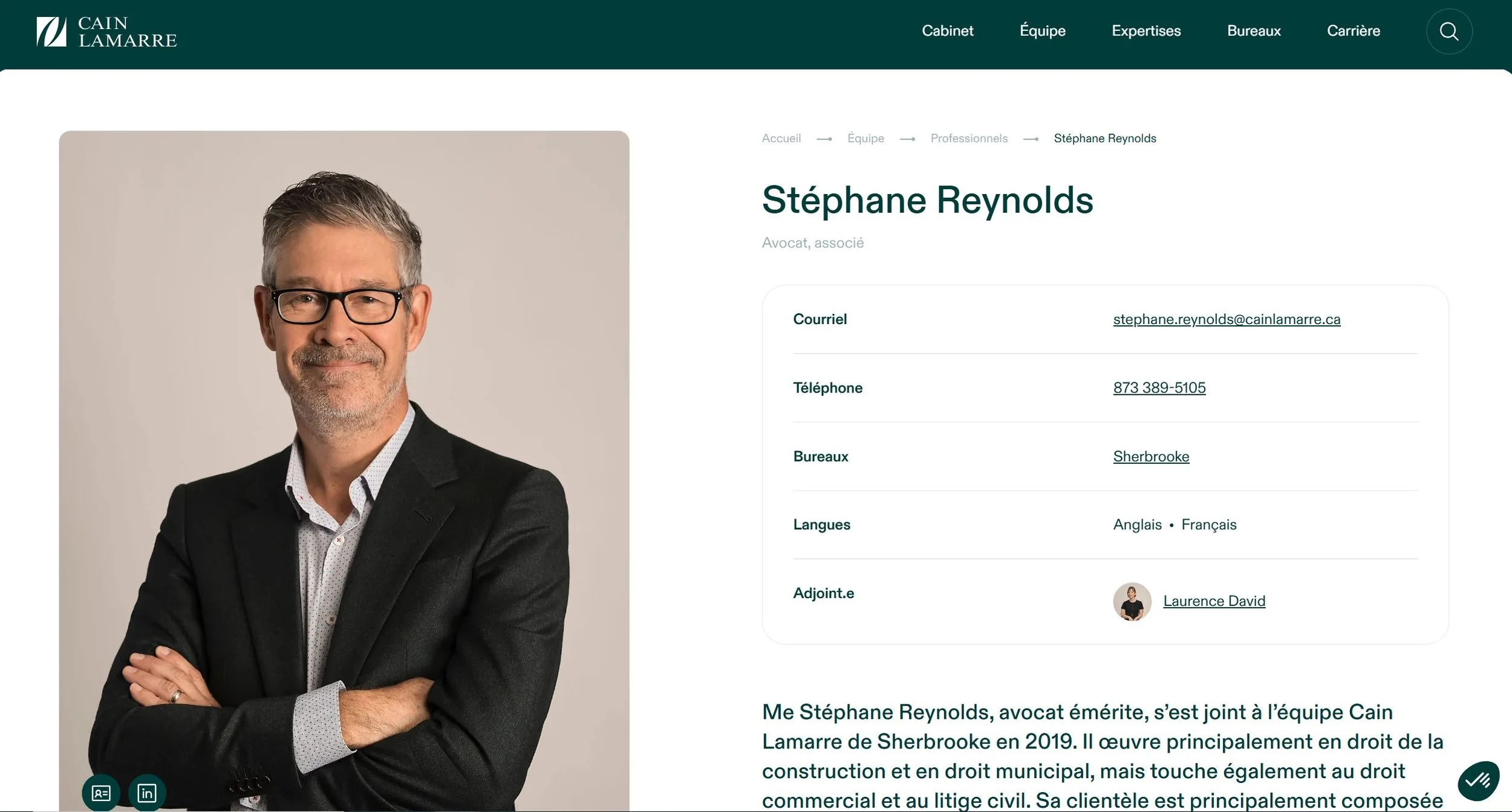 Comme nous l’avons vu précédemment, Mtre Stéphane Reynolds du cabinet Cain Lamarre avait déjà raconté comment il s’est fait embaucher à l’Université de Sherbrooke en tant que chargé de cours seulement 9 mois après avoir été assermenté en tant qu’avocat, malgré le fait qu’il ne rencontrait pas le minimum d’expérience requis de 5 ans de Barreau, norme que Mtre Reynolds invoquait lui-même dans son histoire.